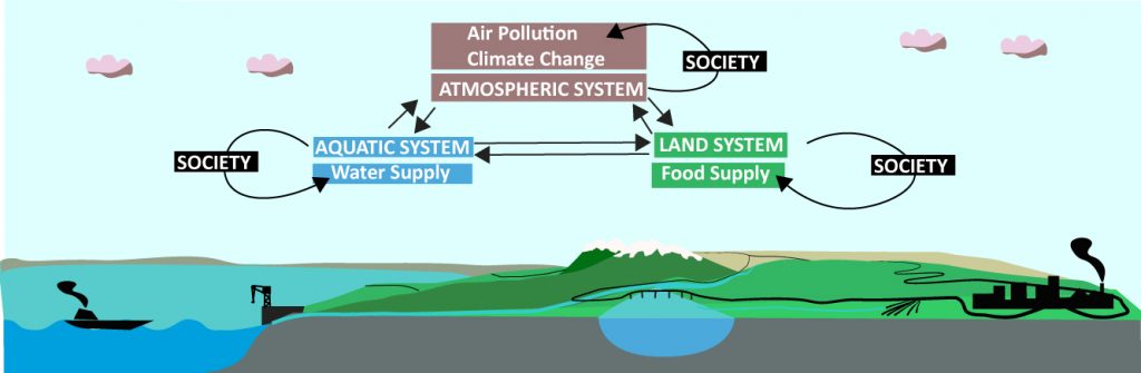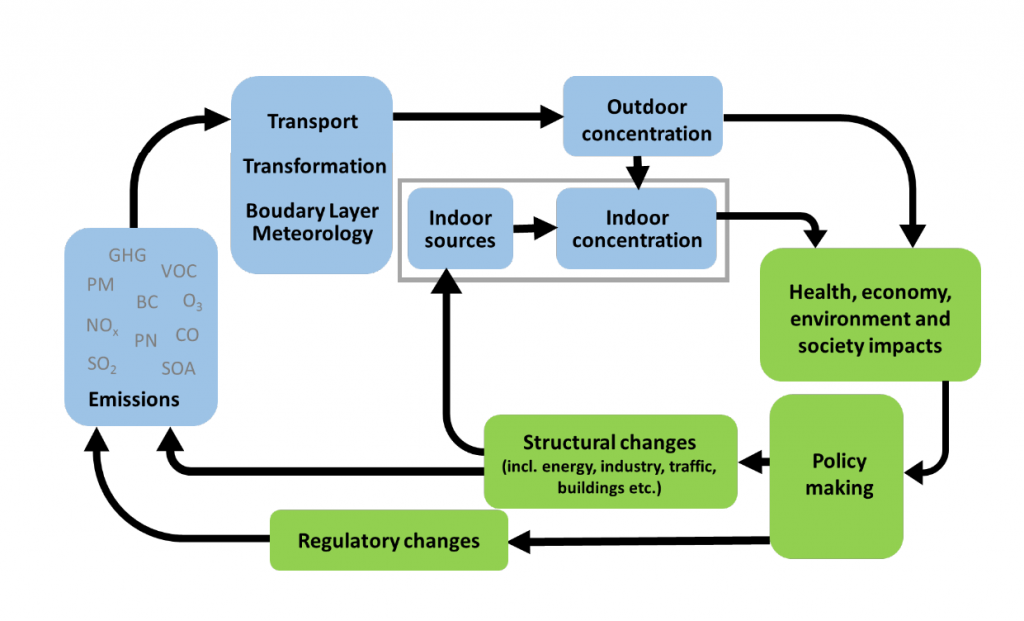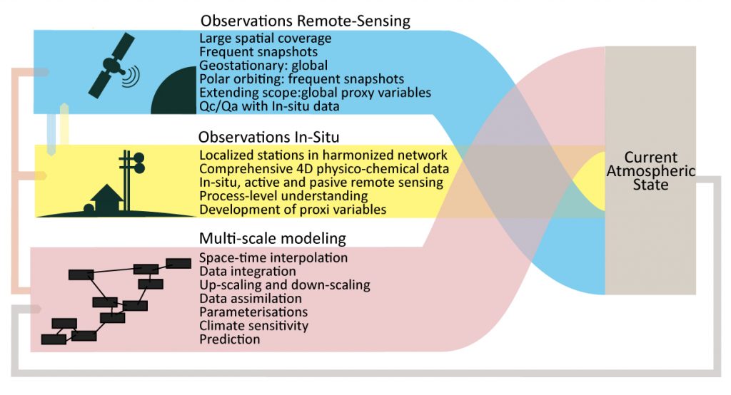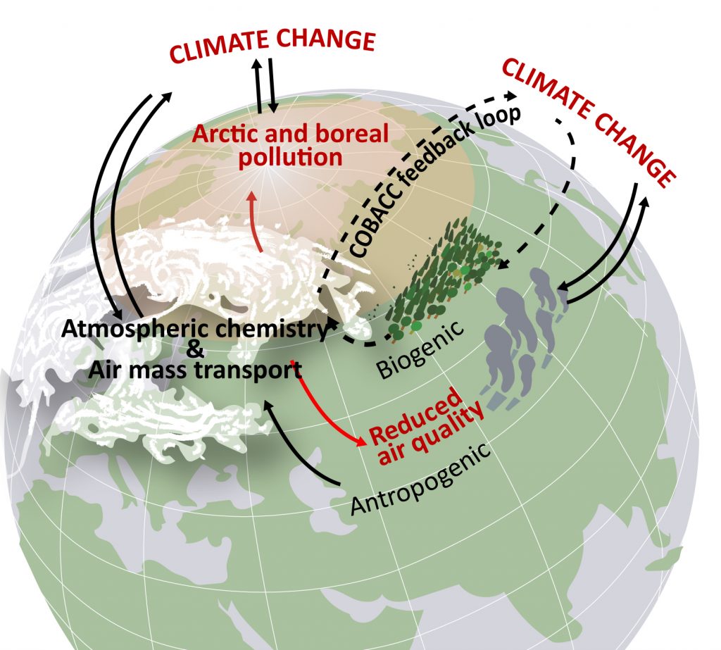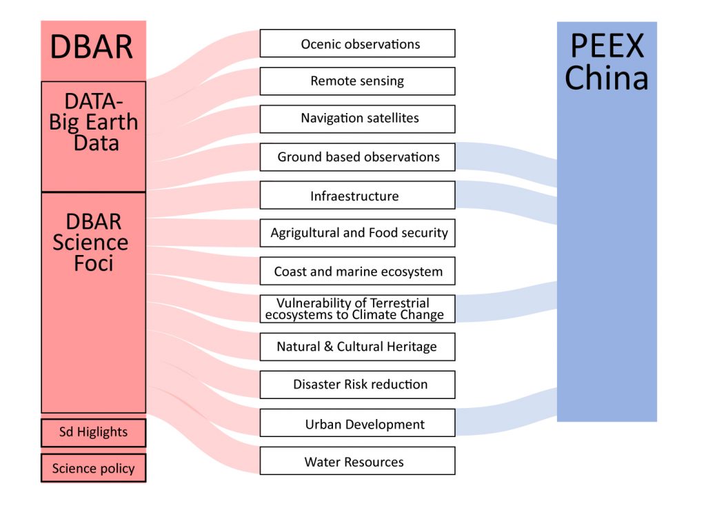 Figure 1. The “Silk Road Economic Belt” the Asia-Pacific economic circle in the east and the European economic circle in the west, and the “the 21st-Century Maritime Silk Road” links the major port cities in China and Southeast Asian countries with Europe. It is the longest economic corridor in the world with the high potential. The Belt and Road is composed over 65 countries with a population of 4.4 billion, which is 63% of the world’s population (left), figure adopted from (www.chinadaily.com.cn/bizchina/2014-06/28/content_17621525.htm) PEEX domain (right), figure adopted from the PEEX Science Plan (Lappalainen et al., 2014).Figure 2. PEEX is interested in and contributing to understanding and quantification of the interlinks and feedbacks of the land-atmosphere-aquatic and society systems relevant to solving grand challenges such as climate change, air quality, food security, and water supply.Figure 3. The schematic diagram of the atmospheric chemistry – society – policy-making – infrastructure loop.Figure 4. Schematic picture of the interactions and feedbacks between the anthropogenic and biogenic components in the Arctic-boreal area affected by the megacities and industrial areas in China/Russia and consequences for air quality within China/Russia and for the global climate – air quality interactions.Figure 6. To detect the initial conditions of the atmosphere, climate and air quality we need three components: ground-based observations, satellite observations, and models.Figure 9. The PEEX-China agenda is contributing to topics introduced in the DBAR Science Plan having a special focus on climate change, urbanization, and research infrastructures providing big data.